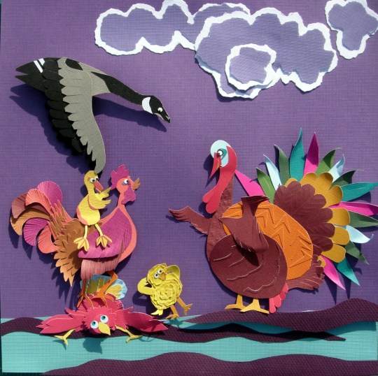 Girl with Geese in cut-paper