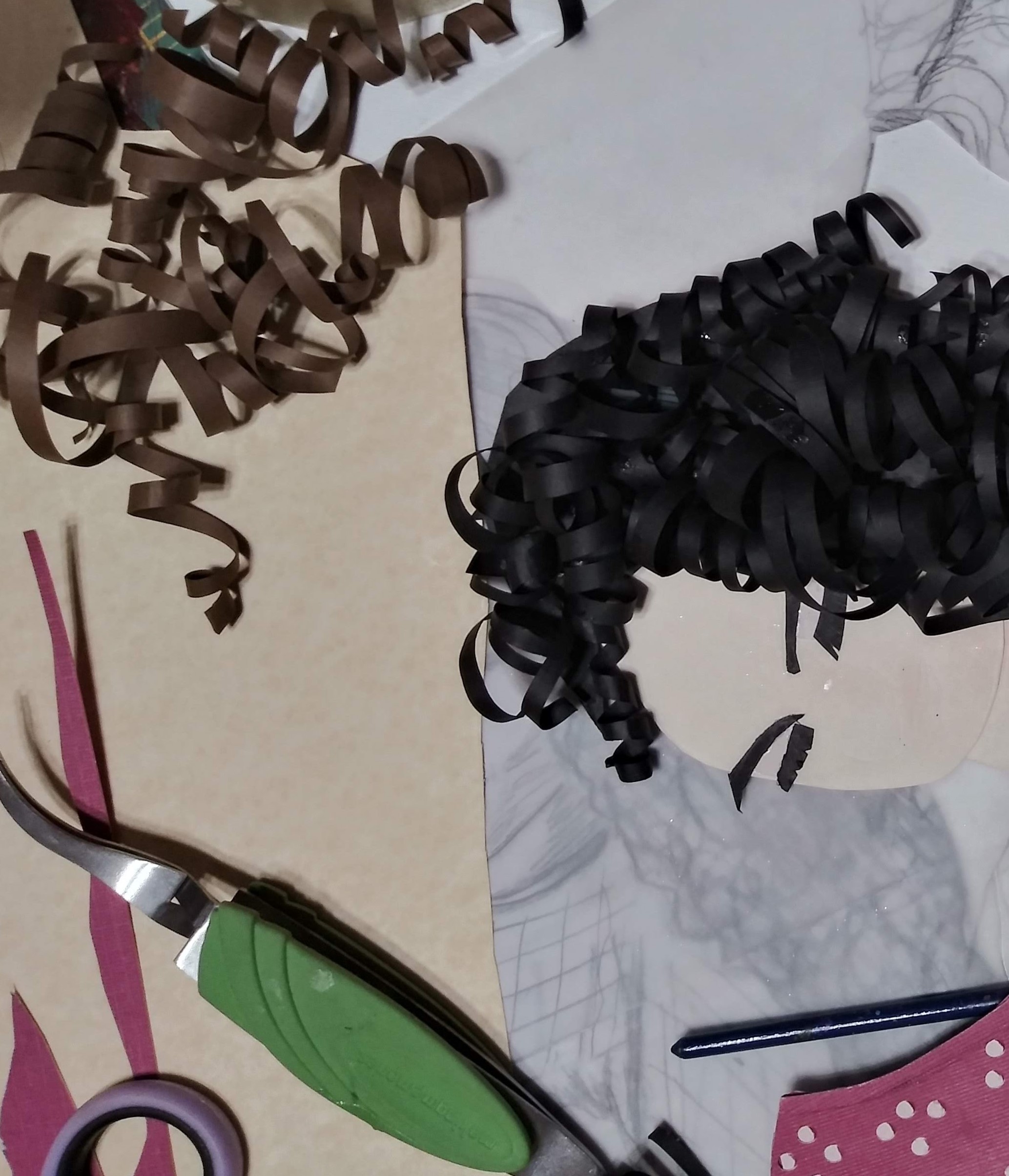 I think it was the day I decided to experiment with making folds in the paper to make my girl on the cover’s shirt look more like fabric, the way I saw another paper artist do, that I finally thought, Wow, that looks pretty cool. I think I got this!