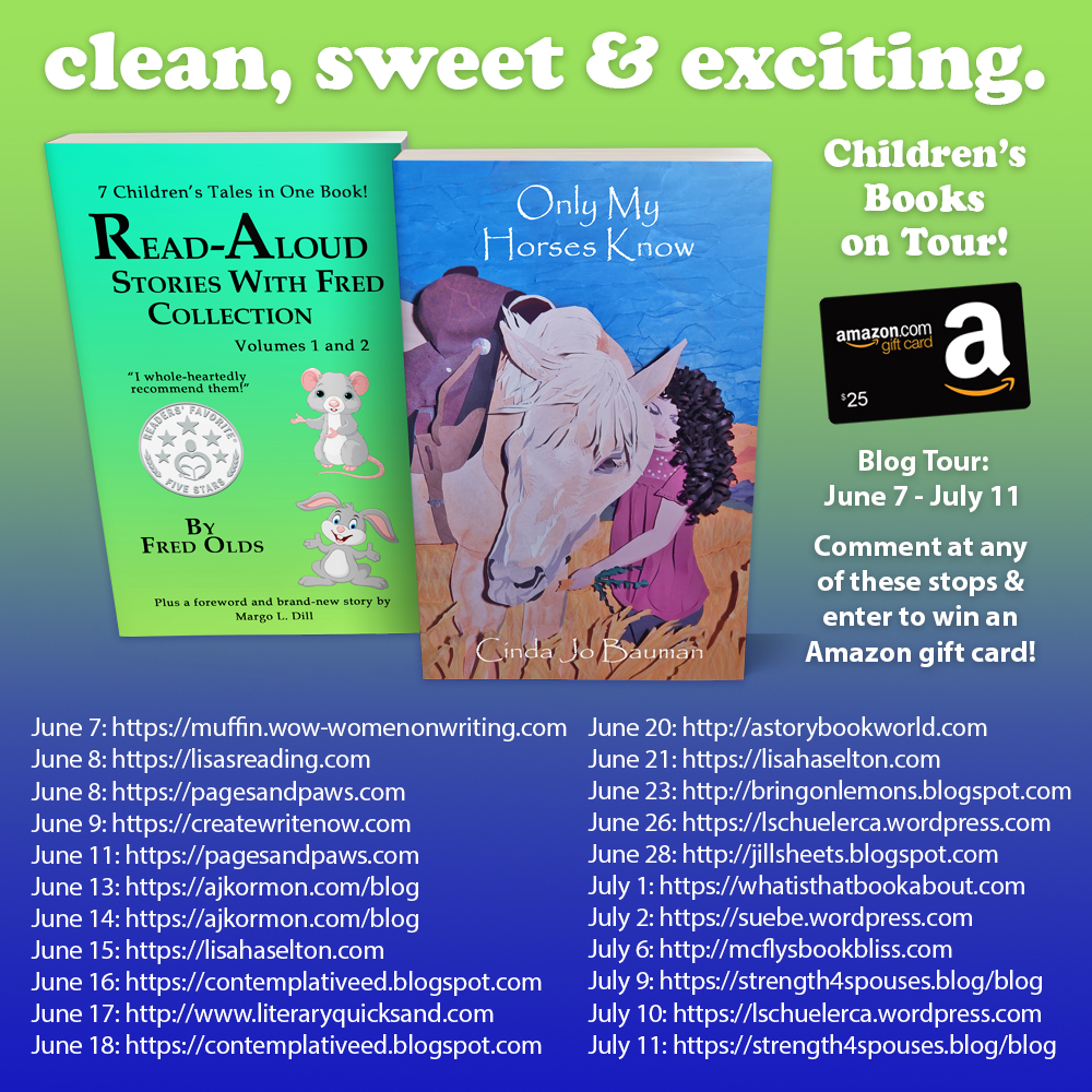 I get to do a blog tour with members of WOW! Women on Writing along with Margo Dill, Editor-911 Books and Fred Olds! I’m so excited about this. It will have book reviews of Only My Horses Know and Read-Aloud Stories With Fred, interviews, and guest posts. This is all so new to me, and I have to admit, I’m a little nervous to read those book reviews. I hope you have a second each day to check out the posts. I’m sure you will enjoy hearing more about Fred and Margo, they are the best! There’s also a contest to win a $25 Amazon gift card if you enter a comment on the posts. See the banner for all of the links and dates, and here is the link for today’s post: https://muffin.wow-womenonwriting.com/2021/06/read-aloud-stories-with-fred-and-only.html
